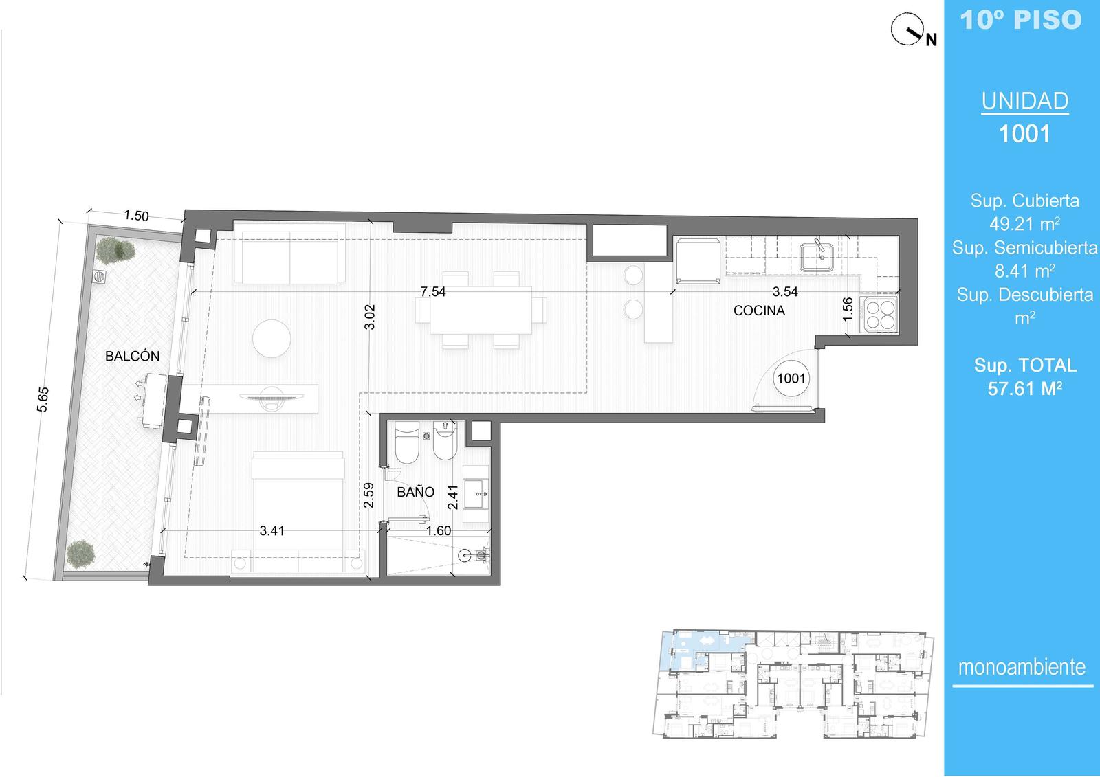 Amplio monoambiente con diseño inteligente y funcional con balcón al frente. Cocina integrada, baño completo, espacios optimizados. Ideal para tu vida moderna.