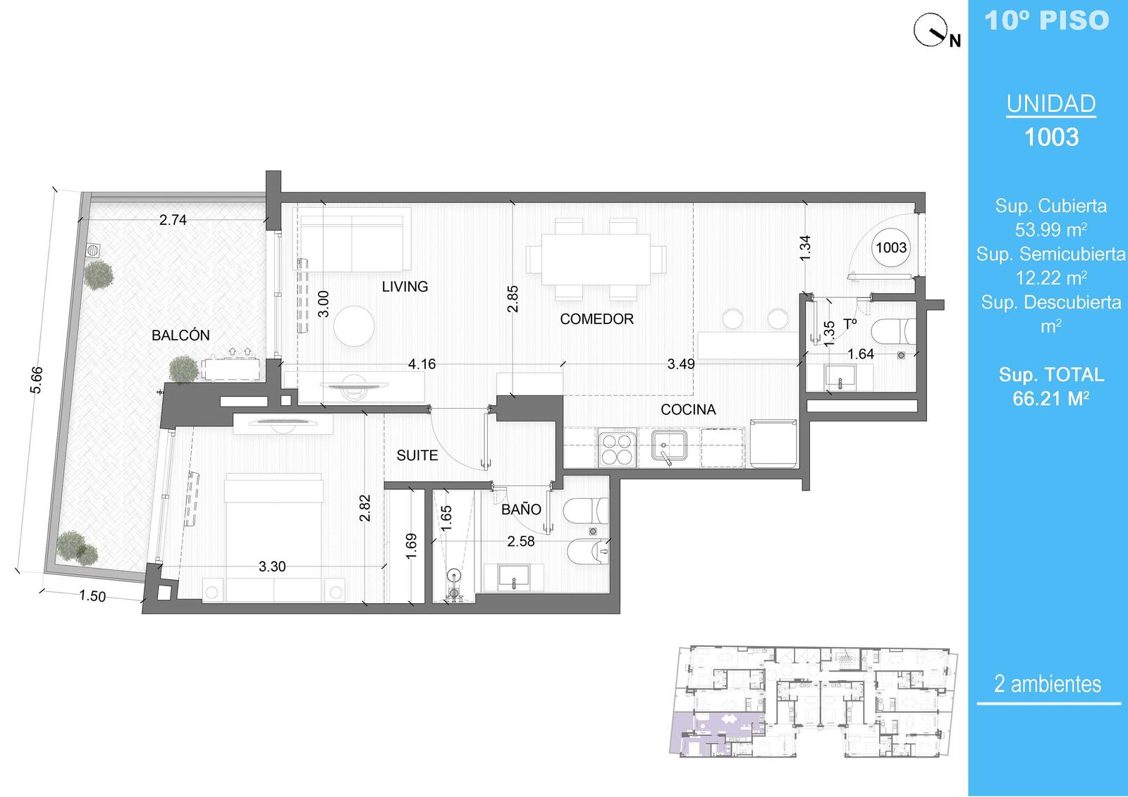 Disfruta de la comodidad y el estilo en este moderno departamento de 2 ambientes. La suite principal, un refugio privado, cuenta con baño en suite para tu máximo confort. El living comedor, luminoso y amplio, se integra a una cocina moderna y funcional, ideal para el día a día. El balcón al frente, perfecto para relajarte, ofrece un espacio de bienestar. Además, un toilette de cortesía brinda practicidad adicional.
