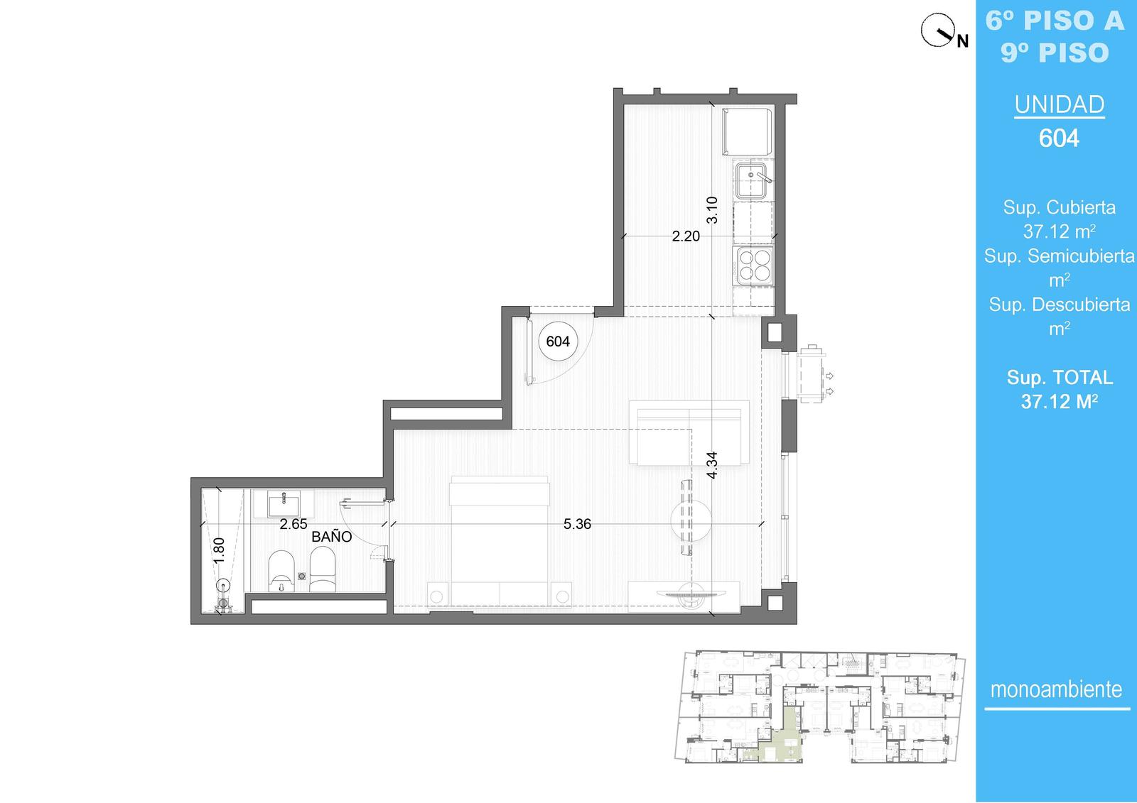 Monoambiente con diseño inteligente y funcional. Cocina integrada, baño completo, espacios optimizados. Ideal para tu vida moderna.