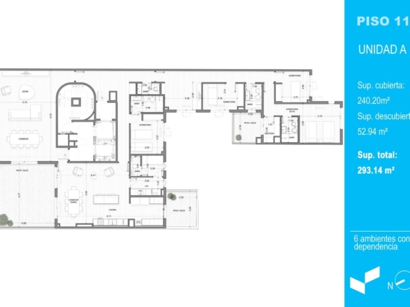 Descubra este excepcional departamento de 6 ambientes que ofrece una distribución ideal para familias numerosas o para quienes buscan amplios espacios. Disfrute de un espacioso estar comedor, una cocina comedor diario separada con salida a un balcón, y una gran terraza perfecta para el esparcimiento al aire libre. La suite principal cuenta con vestidor y balcón privado. Lavadero independiente y dependencia de servicio.