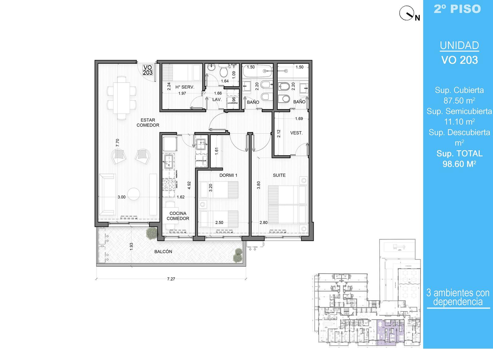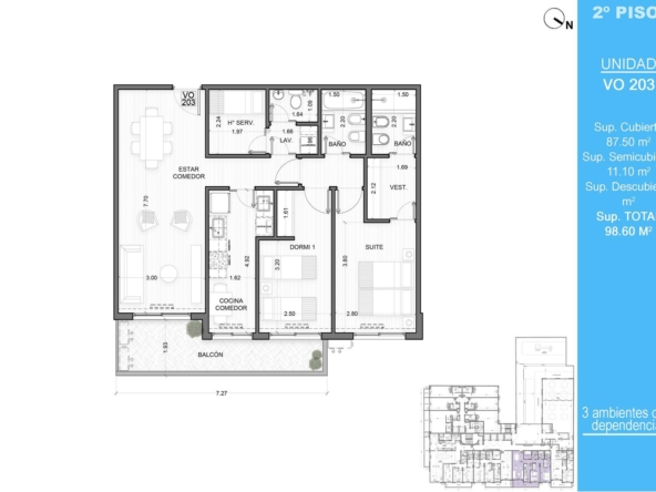 Amplio departamento de 3 ambientes con balcón y un generoso estar comedor. Disfrute de una suite principal con vestidor.Además cuenta con baño completo, cocina comedor independiente, habitación de servicio con baño y lavadero. ¡Ideal para familias que buscan espacio y confort!Amenities; En 1er piso se encontrará el gimnasio y en piso 2 SUM, piscina, juegos infantiles, parrilla y terraza,