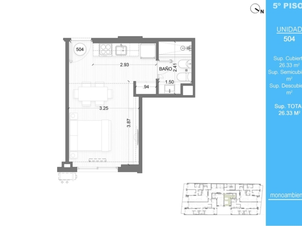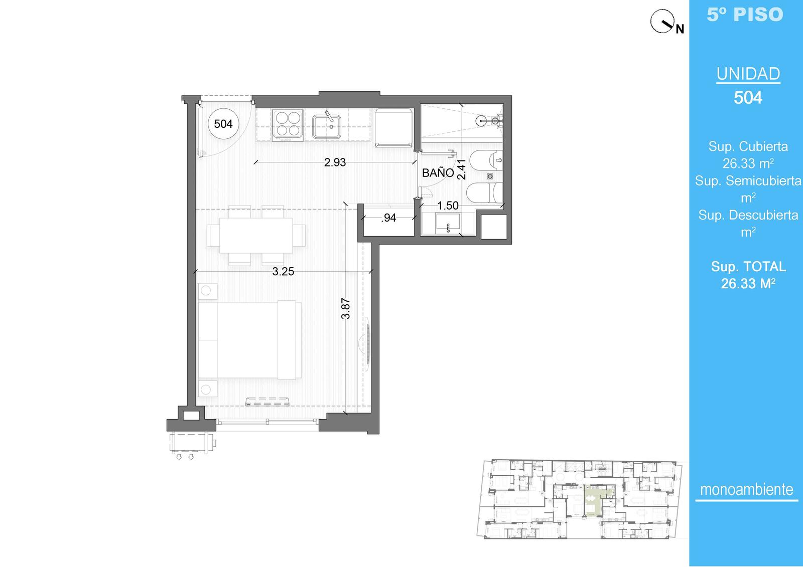 Monoambiente con diseño inteligente y funcional. Cocina integrada, baño completo, espacios optimizados. Ideal para tu vida moderna.El edificio cuenta con excelentes amenities: SUM, piscina con solarium, parrillas, espacio para sucá, plaza de juegos, gimnasio y un pulmón verde que te invita a la tranquilidad.