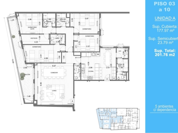 Espacioso y luminoso departamento de 5 ambientes con parrilla, ideal para familias que buscan comodidad y un estilo de vida moderno. Cuenta con 4 habitaciones, dos de ellas con baño en suite para mayor privacidad. El living comedor, con salida al balcón, es perfecto para compartir momentos especiales, y el toilette de cortesía añade un toque de distinción. La cocina, con comedor diario separado, ofrece un espacio funcional para el día a día. La dependencia de servicio con baño y lavadero completa este hogar pensado para su bienestar.