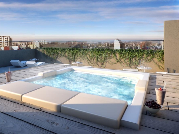 Solarium y Gimnasio con equipamiento, parrillas y piscina climatizada.