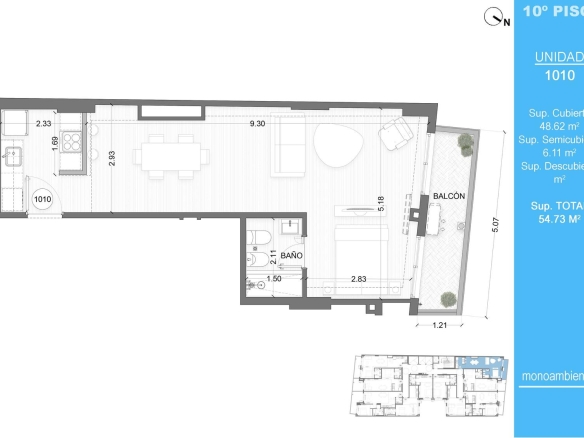 - Tamaño de propiedad 54.73 M2