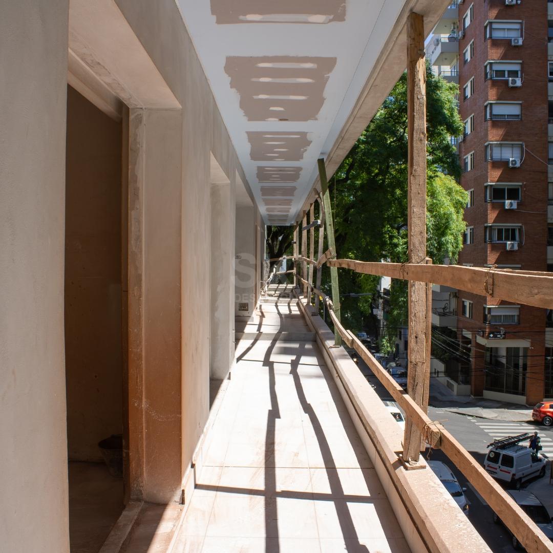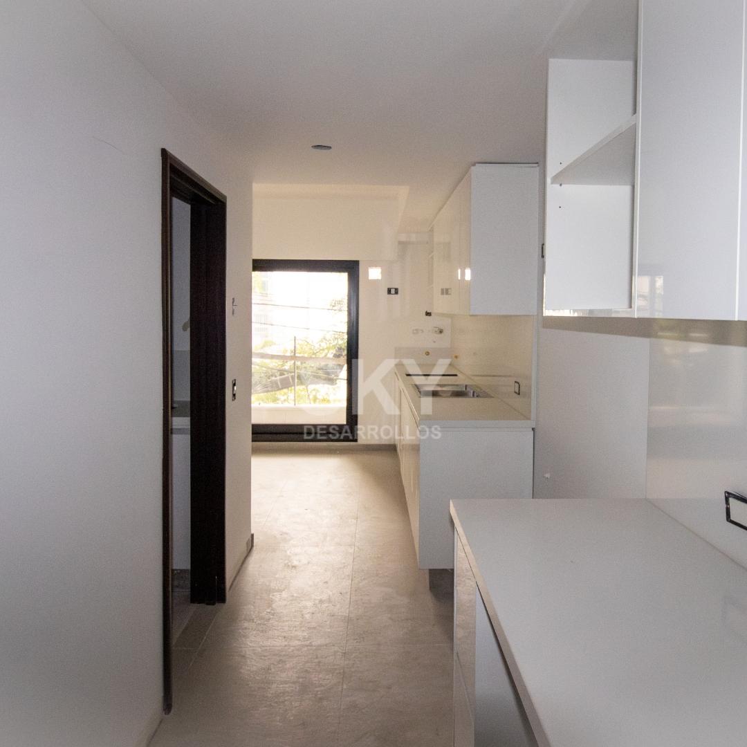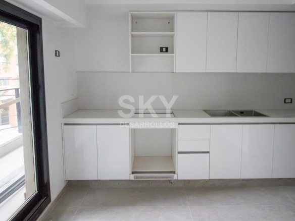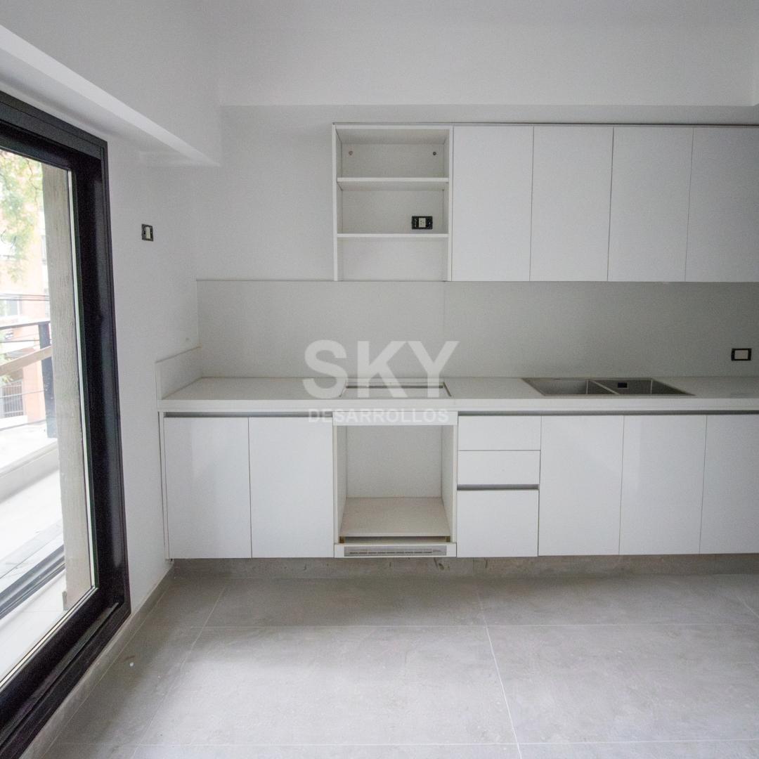 Moderno 2 ambientes con balcón al contrafrente. Habitación en suite, living comedor con cocina integrada con isla y toilette.