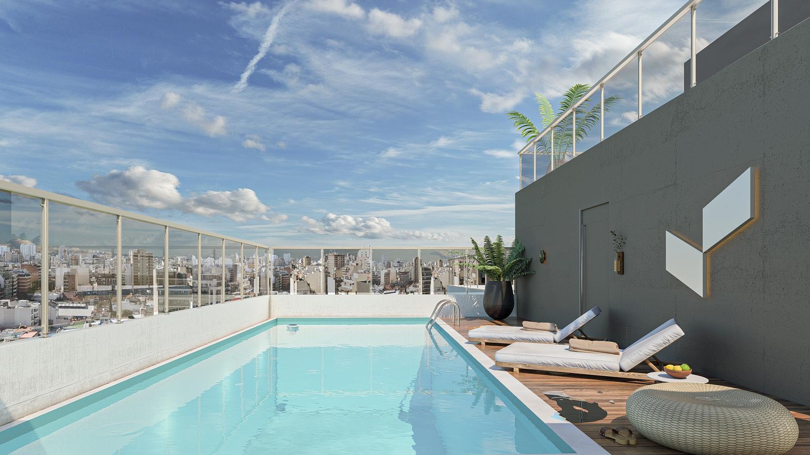 El edificio ofrece completos amenities: En primer piso SUM, gimnasio equipado y piscina climatizada y sanitarios en el piso 12.