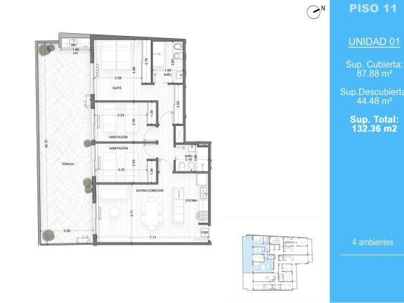El edificio ofrece completas amenities: En primer piso SUM, gimnasio equipado y piscina climatizada y sanitarios en el piso 12.