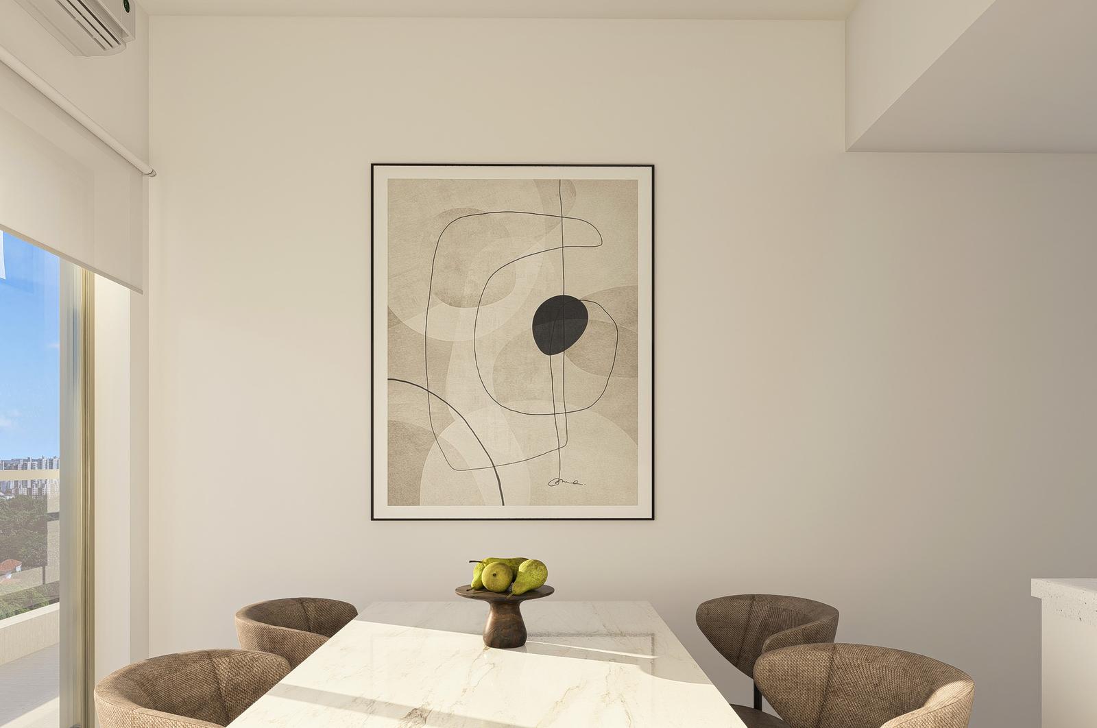 Moderno 3 ambientes con balcón. Suite con vestidor, habitación secundaria con salida a balcón, baño completo, living comedor con cocina integrada.
