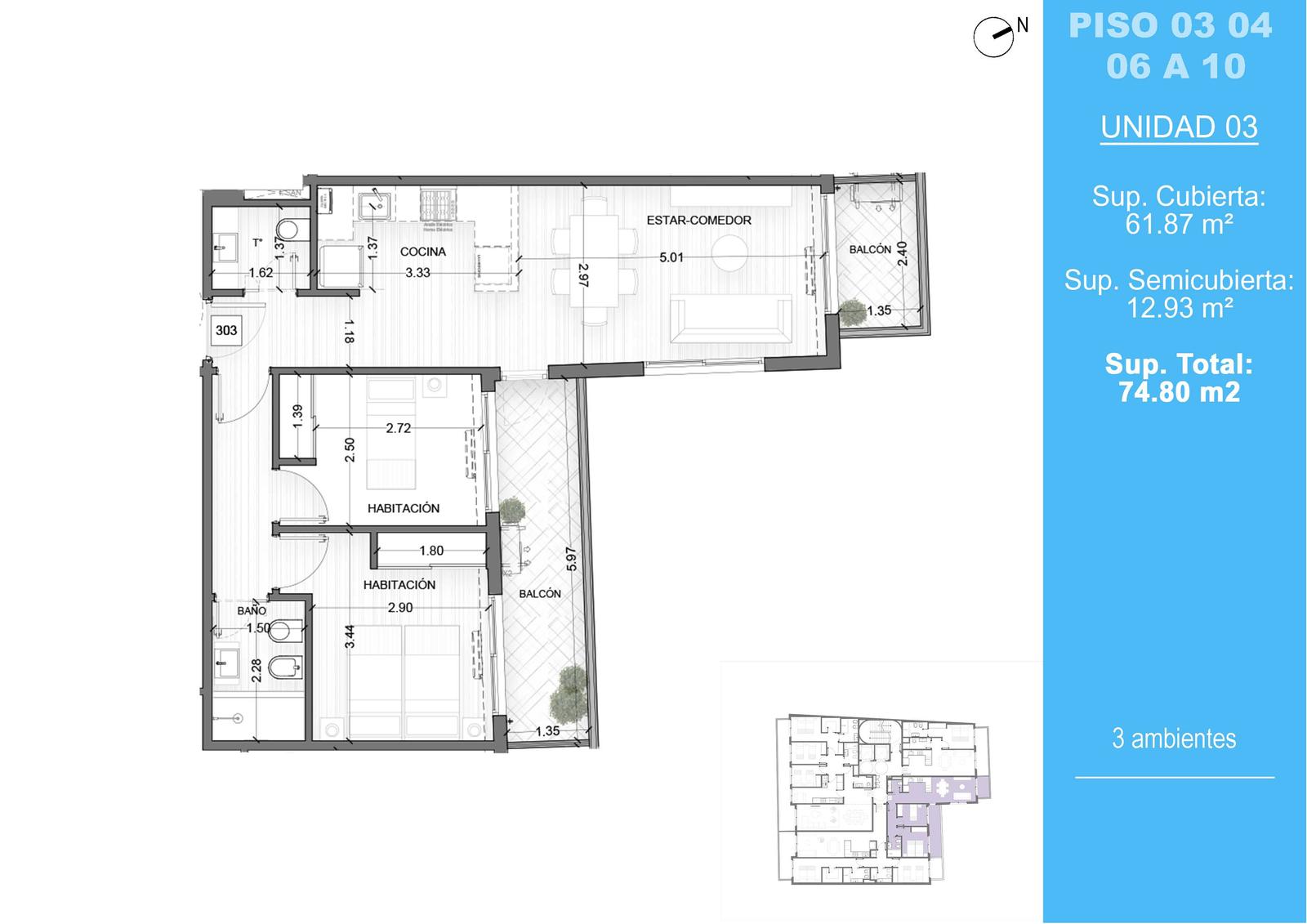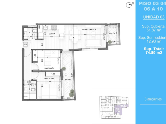 • Tamaño de propiedad 74.8 M2