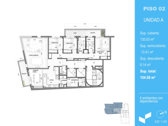 Descubra este luminoso departamento de 4 ambientes, ideal para familias que buscan amplitud y confort. Disfrute de una exclusiva sucá privada, perfecta para reuniones y momentos al aire libre. El dormitorio principal ofrece un espacio de relax con baño en suite. Dos dormitorios con placares espejados comparten un baño completo. Toilette de recepción, cocina con comedor diario y dependencia de servicio con baño y lavadero. Balcón con vista abierta. El edificio ofrece SUM, parrilla y una gran terraza. ¡Un hogar para disfrutar!