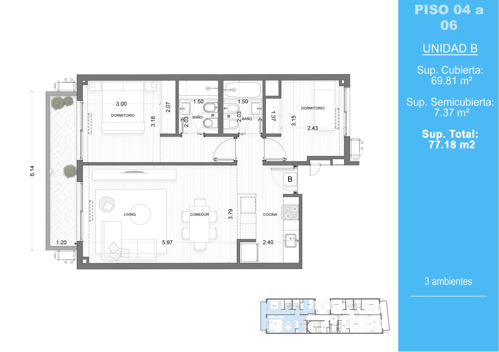 Tamaño de propiedad 77.18 M2